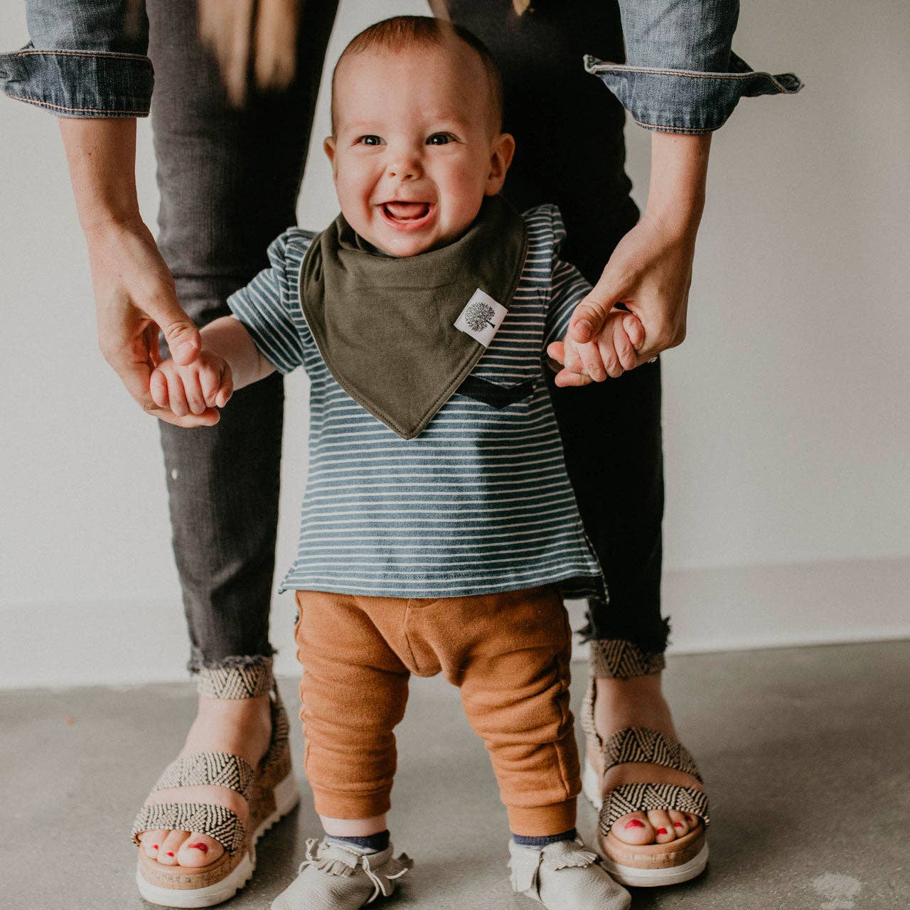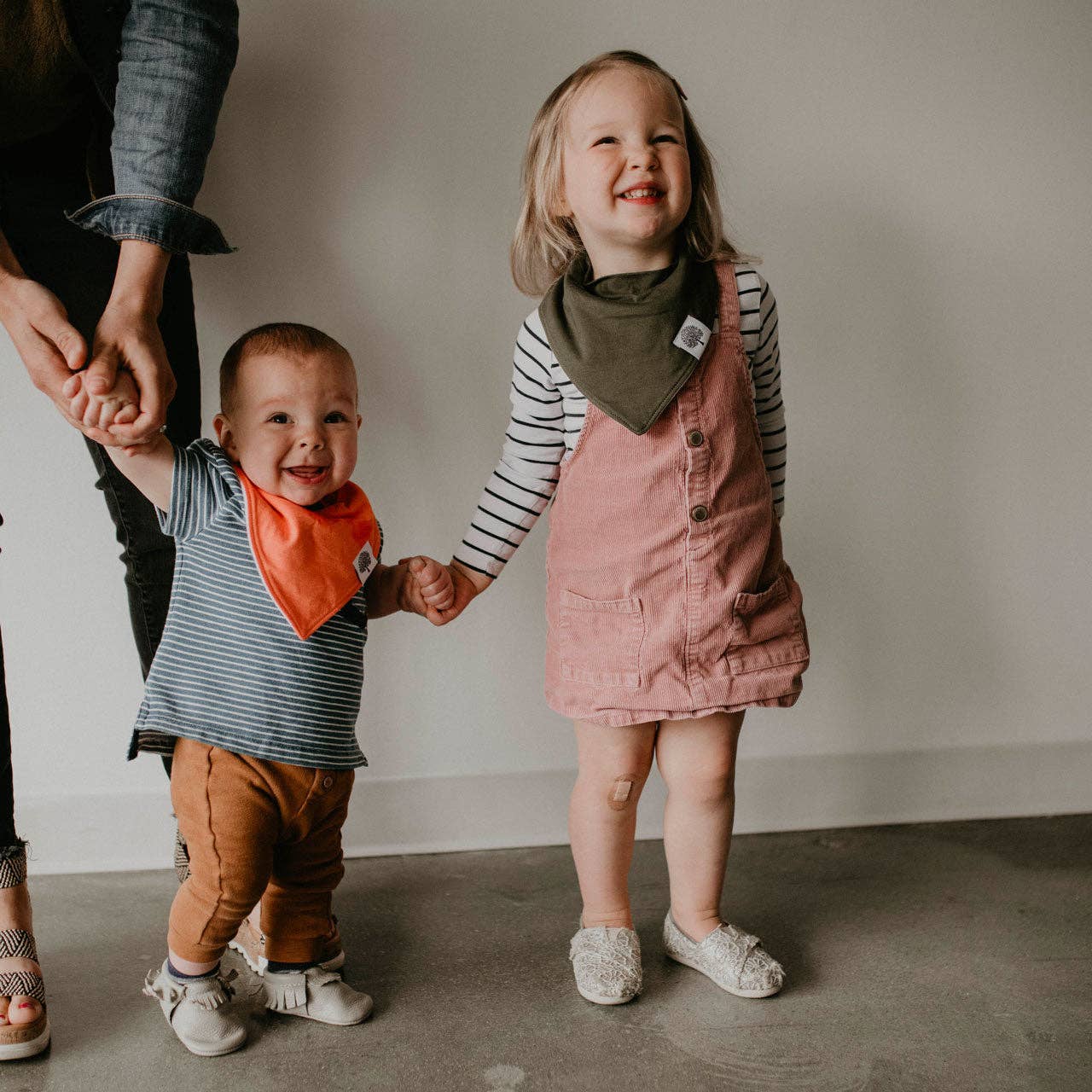 Teething babies drool a lot, and parents don't want their little one's clothes to soak through every few hours! Meet the Estes Bandana Bib Set: the perfect bibs to catch spit up, food mess, and drool so babies stay dry and comfortable. Thick and absorbent, they protect outfits and keep babies dry. Easy to snap on and swap, they're essential for parents. The Estes Set features: - 8 solid colors - Nickel-free snaps (no scratchy velcro) - Adjustable sizes: 3-36 months Our trendy bandana design complements every baby outfit. Adjustable snaps fit up to 36 months. Made with 100% cotton front and 100% polyester back, our bibs are soft and absorbent. With 8 colors, parents never worry about running out. Easy to wash, the colors stay vibrant after each cycle. Our Estes Bandana Bibs are a daily must-have. Whether packed in a diaper bag or kept at home, they offer a stylish, practical solution for keeping babies clean and comfortable.
