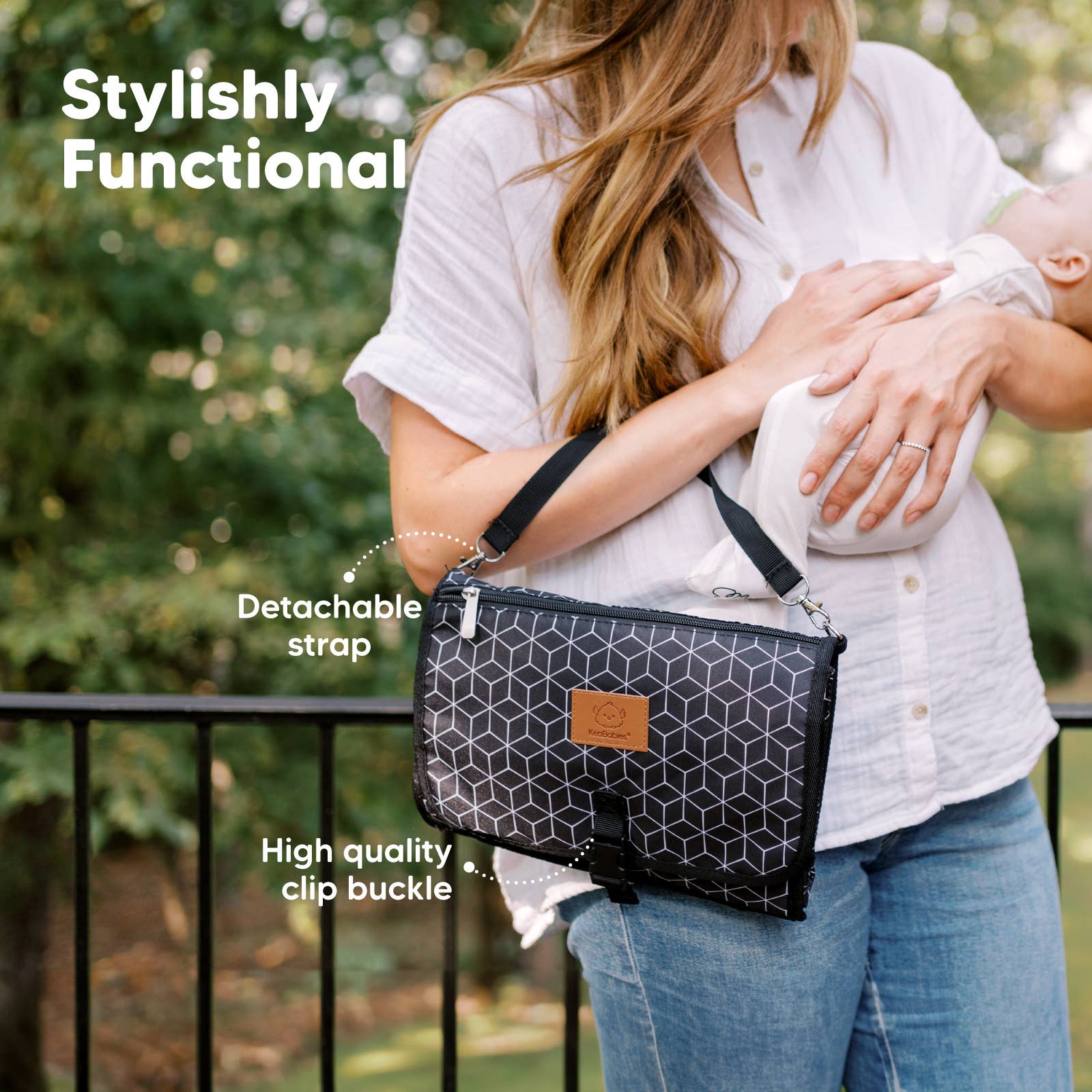 - Portable changing pad keeps you hands-free all day