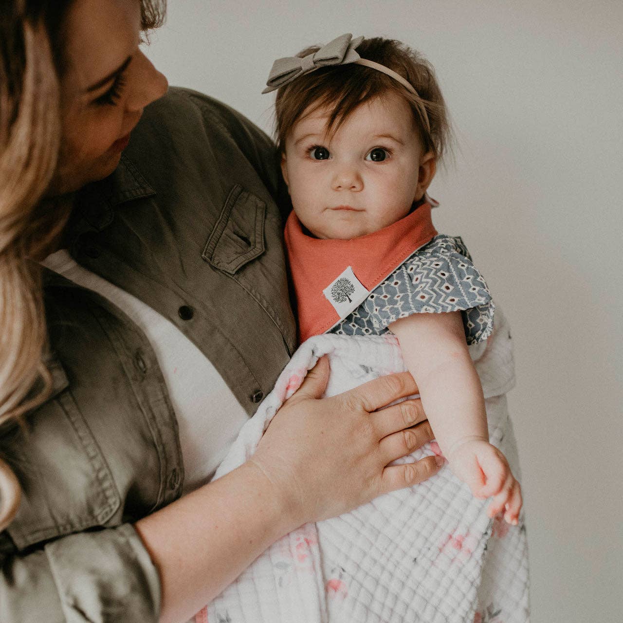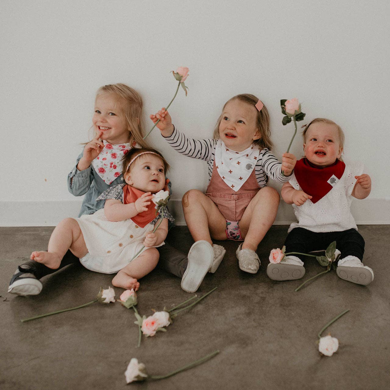 Teething babies drool a lot, and parents don't want their little one's clothes to soak through every few hours! Meet the Rose Bandana Bib Set: the perfect bibs to catch spit up, food mess, and drool so babies stay dry and comfortable. Thick and absorbent, they protect outfits and keep babies dry. Easy to snap on and swap, they're essential for parents. The Rose Set features: - 8 girly colors and patterns - Nickel-free snaps (no scratchy velcro) - Adjustable sizes: 3-36 months Our trendy bandana design complements every baby outfit. Adjustable snaps fit up to 36 months. Made with 100% cotton front and 100% polyester back, our bibs are soft and absorbent. With 8 colors, parents never worry about running out. Easy to wash, the colors stay vibrant after each cycle. Our Rose Bandana Bibs are a daily must-have. Whether packed in a diaper bag or kept at home, they offer a stylish, practical solution for keeping babies clean and comfortable.