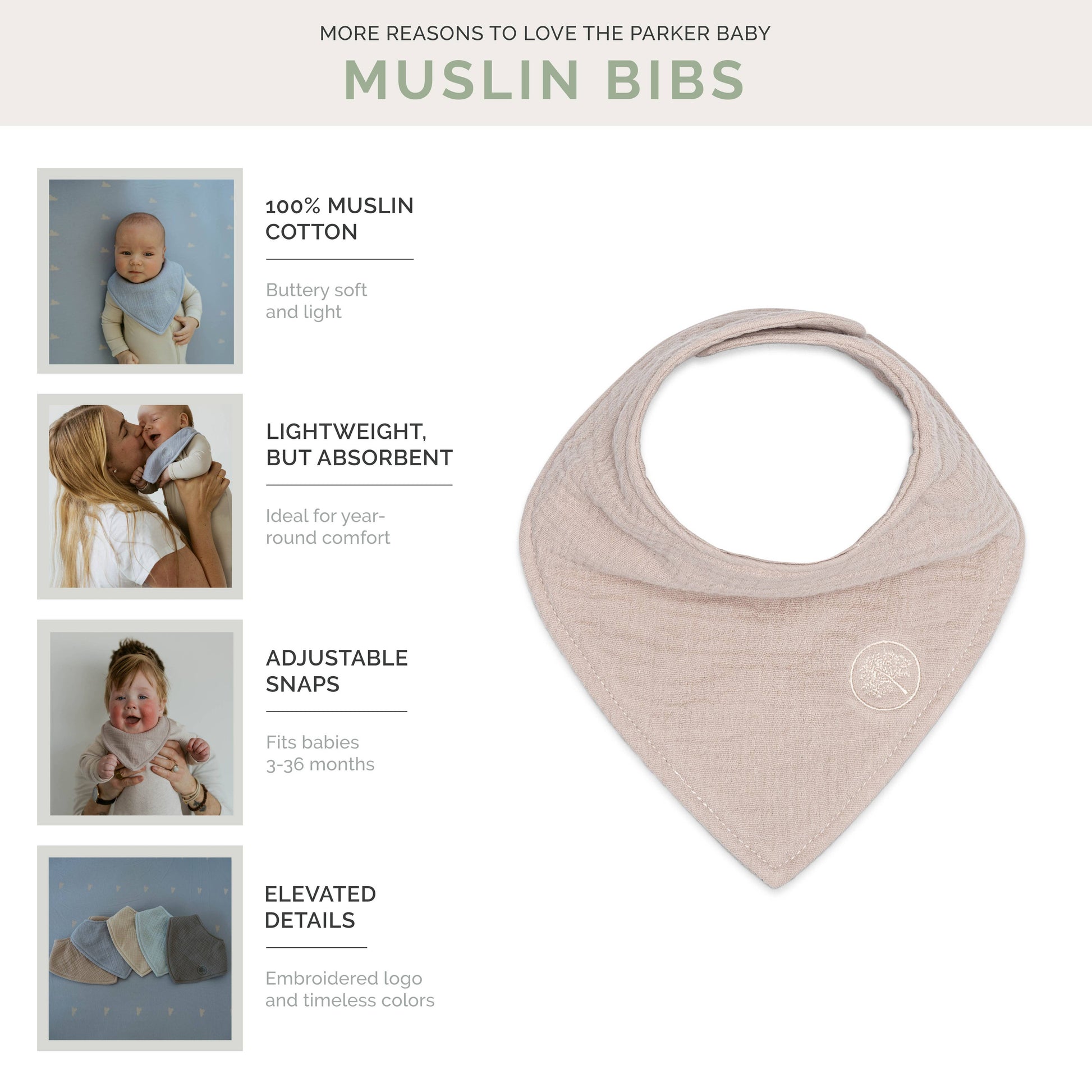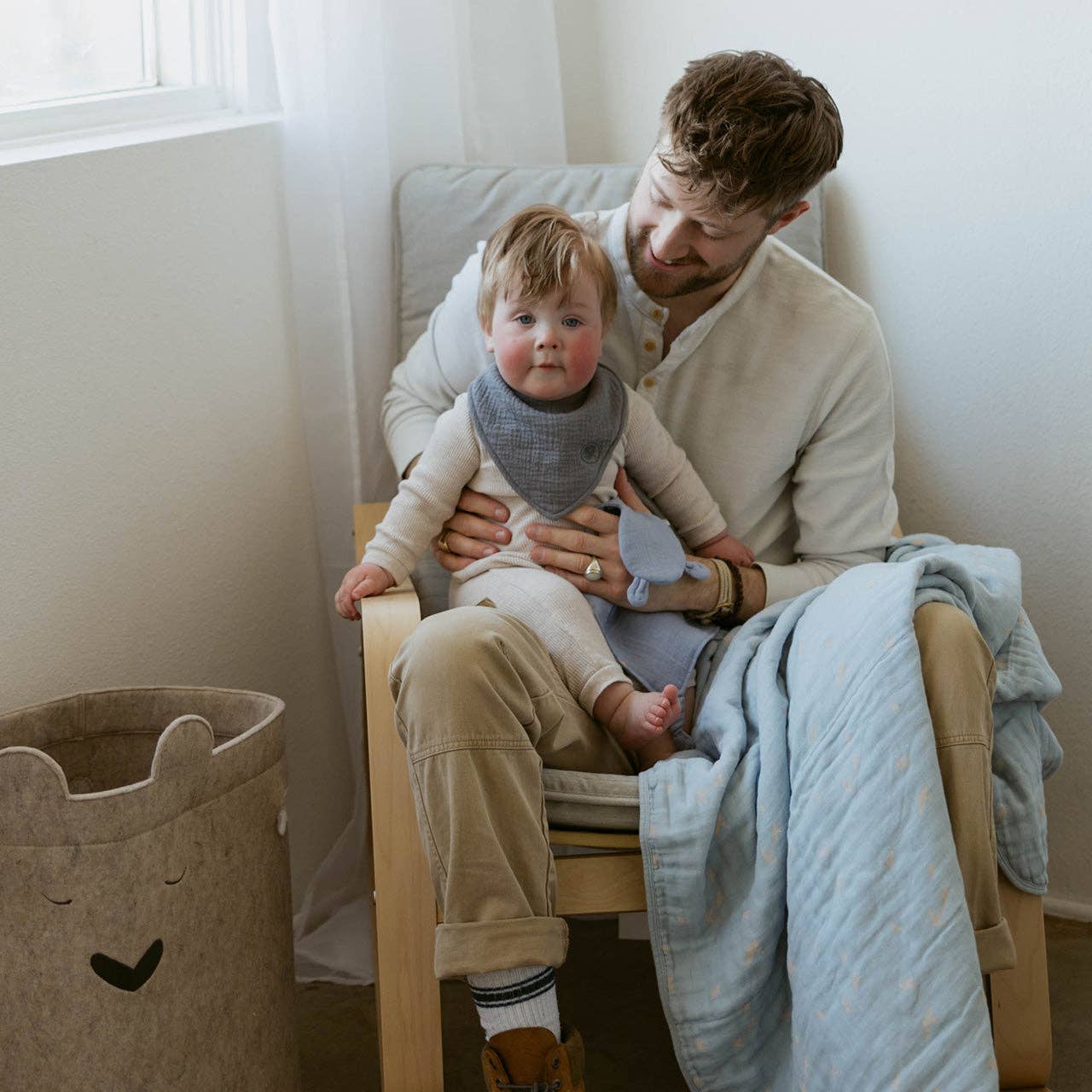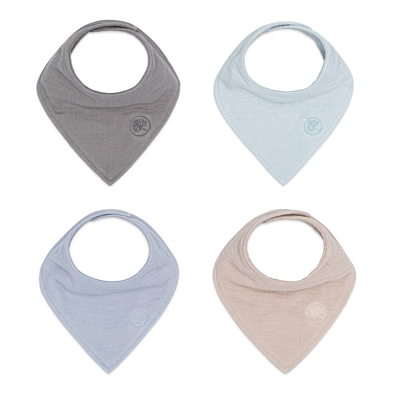 Teething babies drool a lot, and nothing ruins a cute outfit faster than a soaked top. The Stormy Muslin Bandana Bibs are the perfect solution, designed to keep babies dry, comfortable, and stylish. Crafted from soft, absorbent muslin cotton, these bibs effectively catch spit-up, food mess, and drool, making them a must-have for any baby collection. Key Features: - Set of 4 Cute Colors: Matches and enhances various baby outfits. - Nickel-Free Snaps: Adjustable sizing from 3 to 36 months without irritation. - Trendy Bandana Design: Stylish and practical. - Pre-Shrunk Muslin Cotton: Retains size and shape after washing. - Durable, Absorbent Construction: Terry layer between 4 layers of muslin for all-day dryness. Easy to care for and designed to stay vibrant wash after wash, the Stormy Muslin Bandana Bibs are a practical and stylish choice.